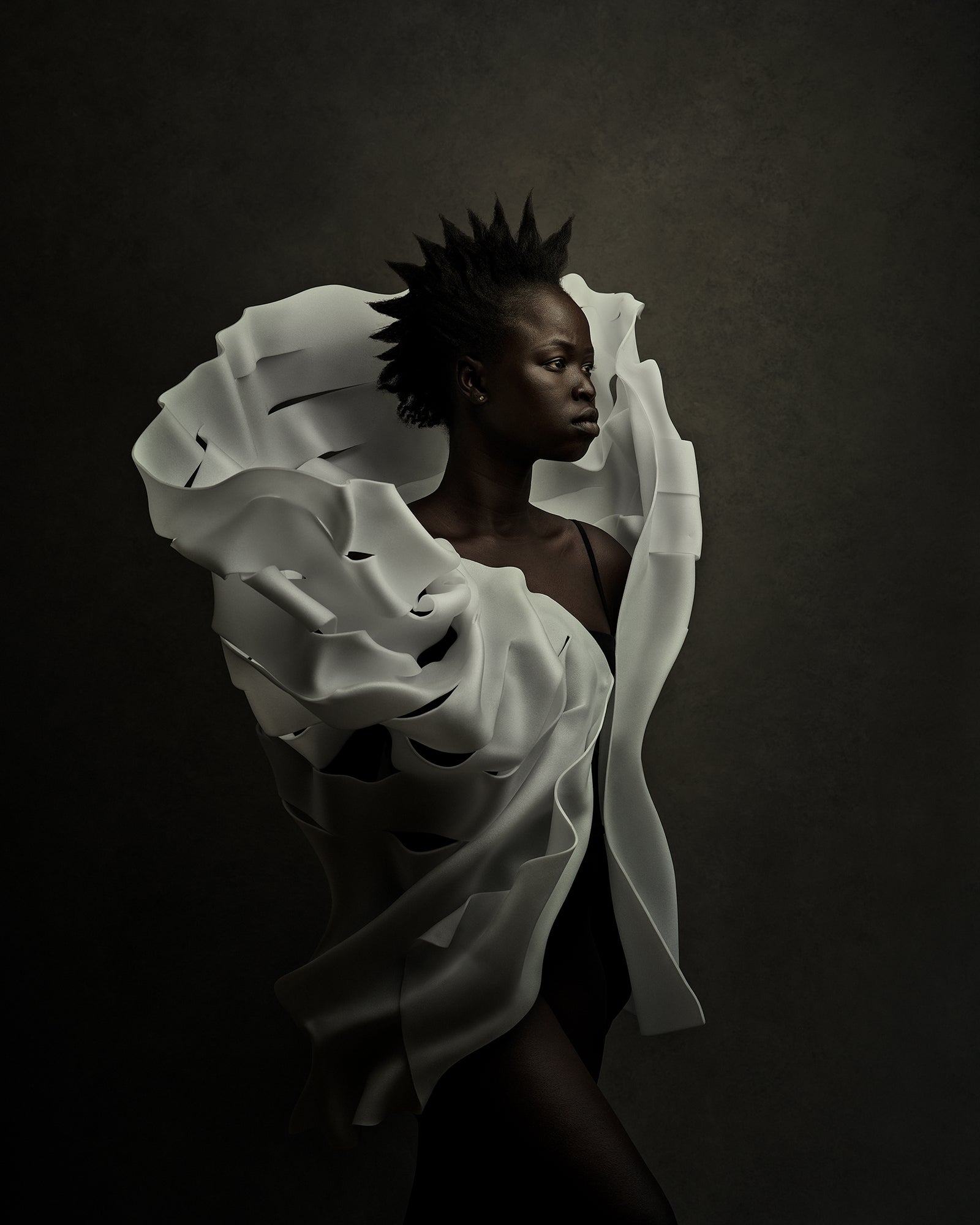 How would you describe your style or approach to photography?My work is conceptual and emotive, often combining sculptural elements with dramatic lighting and styling. Whether I’m creating a fine art portrait or a fashion editorial, my approach is always rooted in purpose. Every pose, fabric fold, or beam of light is there to support the emotional core of the story. I’m fascinated by how the human body and materials interact, and I often design and build the physical elements in my images myself, like the sculpted forms in the series I'm presenting at this exhibition.